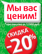 В период с 22 марта по 13 апреля при покупке на сумму от 12 000 руб. вам предоставляется скидка 20% на все товары в заказе .
